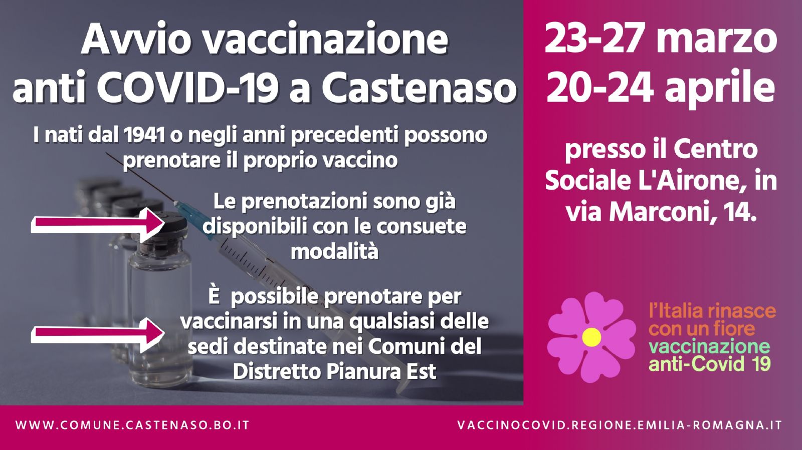 vaccinazioni anti covid 19 a castenaso secondo turno 20 24 aprile citta di castenaso