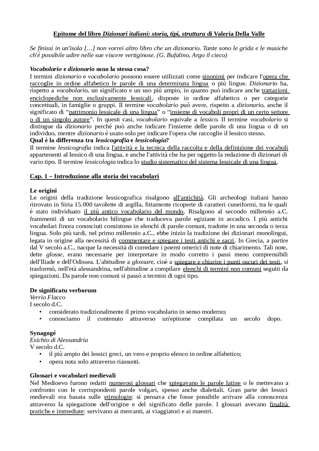 riassunto dizionari italiani valeria della valle docsity