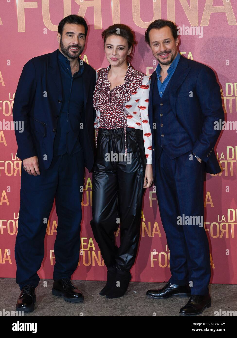 italy rome 17 december 2019 photocall of the movie la dea fortuna by ferzan ozpetek pictured l edoardo leo jasmine trinca and stefano accors stock photo alamy